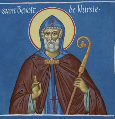 Saint Benoît est né à Nursie vers 480 dans une famille patricienne. C'est l'époque à laquelle vivaient dans notre pays Clovis, le roi des francs ainsi que Clotilde, Geneviève, la bergère de Nanterre et Rémi l'évêque de Reims, une époque troublée par les invasions des barbares auxquelles fait écho le texte de saint Grégoire.